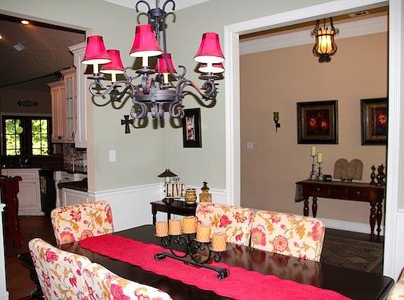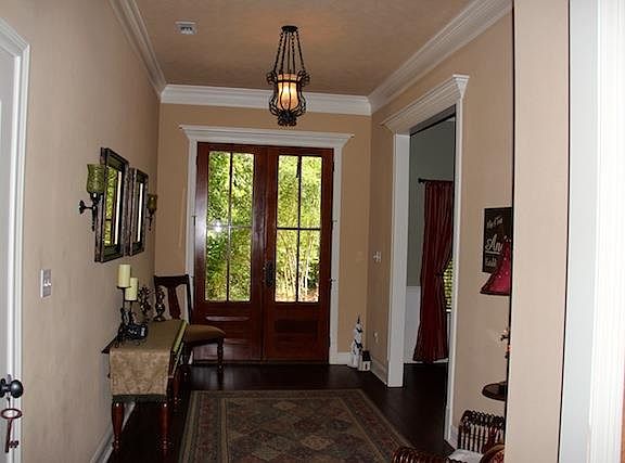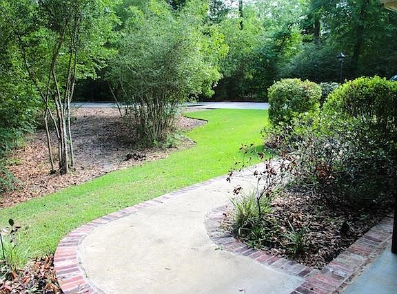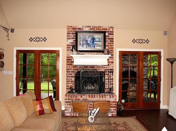 This custom-built home with brick and stucco secluded on a beautiful 1.4 acre wooded lot. Black lamp posts line long winding driveway. Large covered front porch with 8' double doors open into inviting entry way. This home features wood floors, tall ceilings, crown trim throughout and upgraded lighting. Formal dining leads to the kitchen which features walk-in pantry, island, granite counters with tile backsplash, wrap-around bar, and beautiful glass-front cabinets. Kitchen, Living Room and Master bedroom all have vaulted ceilings with wood beams for added beauty. Brick fireplaces in Family room and on Back Porch. Large Master Suite with vaulted ceiling bathroom. Three additional bedrooms with bath and large bonus room upstairs. Large Inside Utility room with cabinets, shelves, sink. Garage has workshop area and large storage closet. Outdoor paradise! Large patio looks out to woods behind and on the side. Crushed granite walking paths with three wooden bridges. 100' zipline negotiable.