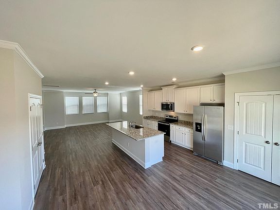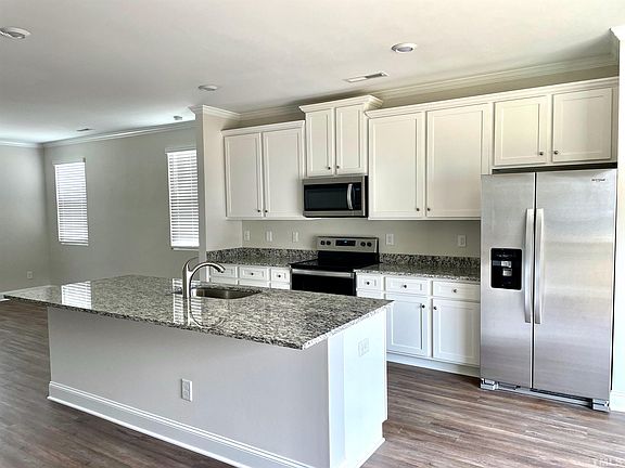 Spacious 3-bedroom, 2.5-bathroom end unit townhouse located in the Riverwalk community in Raleigh 2 car garage. Designer upgrades, granite counter tops, SS appliances, pantry, large living room, open floor plan. There is a finished basement open to the patio and garage. Can be a great recreation room, office, playroom or family room. Washer/Dryer included. Minutes to 540 and shopping. Pets negotiable.