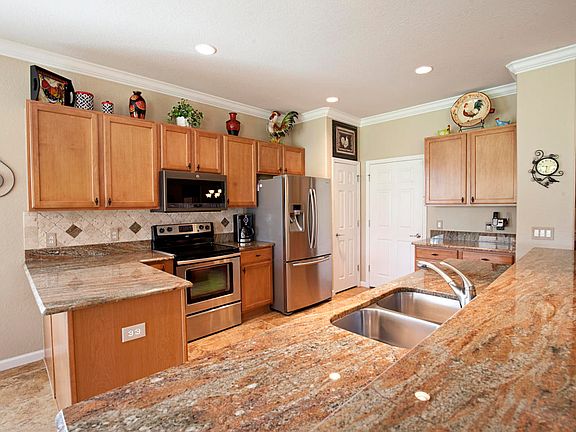 Sheridan 3/2/2 totally renovated and the finishes are lovely. Granite countertops, wood/tile/carpet floors, crown molding, custom paint, custom lighting and fans, SS upgraded appliances, custom backsplash, plantation shutters and solar shades in lanai. Speaking of lanai, glass enclosed, tiles floors and a fabulous view in the extended rear yard with plenty of privacy, and room for a large screen enclosure and pool. Landscaping is custom and very well done, Exterior paint is new and stone accents on front of the house just add curb appeal. Do yourself a favor and take a good look at how much house you can buy with a resale. This home is better than a new home with all the custom finishes for a fraction of the cost in a finished neighborhood just waiting to welcome you with open arms.