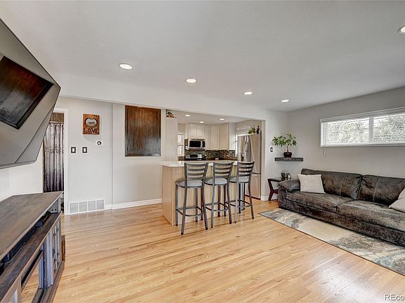 Welcome to this charming, remodeled, classic, brick ranch home located in the exemplary Perl Mack Manor neighborhood! This home features an oversized two-car garage with an attached storage shed with manual garage style door for ease of access, additional RV parking, an outdoor fire pit, a designated garden, drip system for the rose bushes, a covered patio, and additional deck space. This outdoor oasis has it all! As you step inside you will appreciate the original hardwood floors and the abundance of natural light coming through the living room bay window. The living room seamlessly flows straight into the kitchen where you will find a massive island that provides a breakfast bar and additional storage. The kitchen is equipped with a gas stove, stainless steel appliances, stylish backsplash, and ample cabinet storage which features pull-out pantry shelving. The main floor also includes a large primary bedroom, a secondary bedroom, and an updated full bathroom. Heading downstairs you will find a full, finished basement adding another living space whether it be a secondary living room, playroom, or office space. The basement level is completed with the third bedroom, a ¾ remodeled bathroom, and a large laundry room which incorporates extra storage space. This home is in a prime location, approximately a 15-minute drive to Downtown Denver, a 10-minute drive to Olde Town Arvada, and a 25-minute drive to Boulder. Conveniently located near all the major highways - I-76, I-25, I-270, and Highway 36 - get to wherever you may need to go. This home truly has everything you could want and need, come see for yourself!