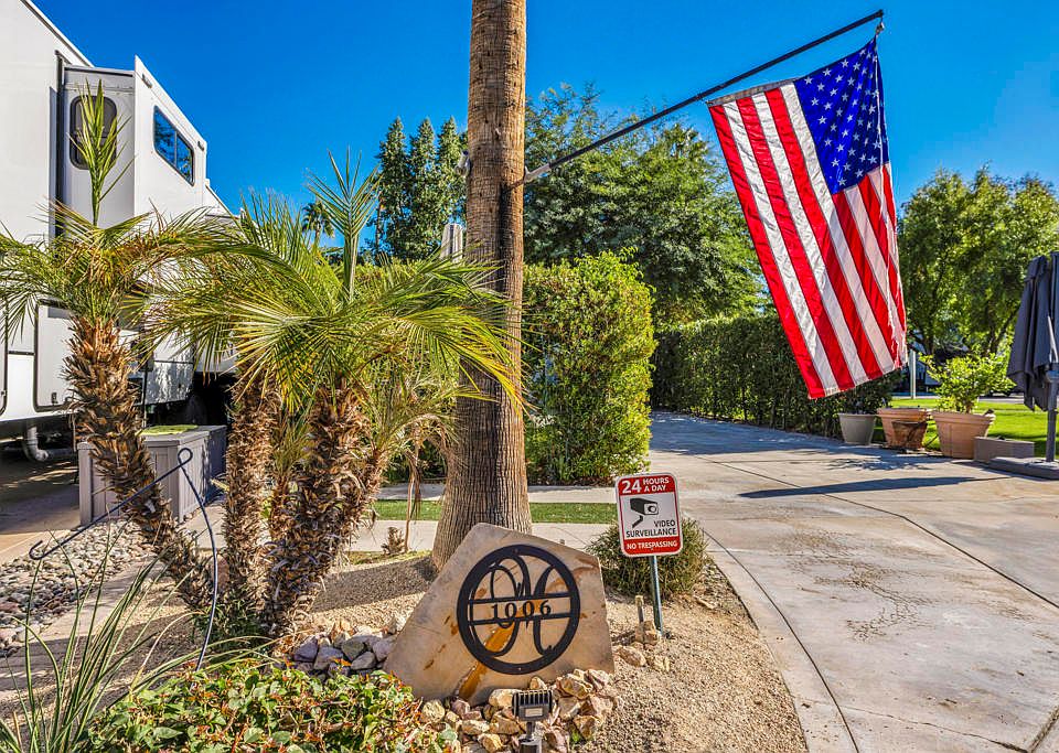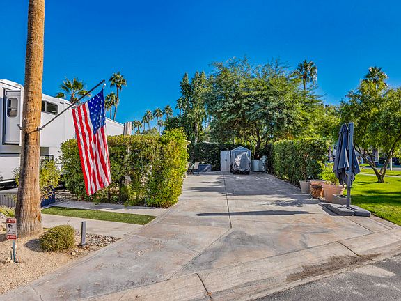 Exceptional corner lot in one of the most desirable locations within the resort, offering true resort-style living with complete privacy. Ideally situated on a serene double fountain pond with golf course frontage, this beautifully appointed property is framed by mature hedges, creating a secluded retreat without sacrificing views. Designed for entertaining and everyday enjoyment, the custom pergola shelters an impressive outdoor kitchen featuring a BBQ, side burner, refrigerator, ice well, and speed bar--perfect for hosting gatherings or enjoying peaceful sunset evenings. A gorgeous rock water feature enhances the tranquil ambiance, while a charming herb garden adds both beauty and function. This is a rare opportunity to own one of the premier lifestyle lots in the resort. Outdoor Resorts Palm Springs is a Five Star RV Resort Community combining luxury with affordability. It is a guard gated resort that sits on 137 beautifully landscaped acres with 27 holes of executive golf, 10 tennis courts, 13 pickleball courts, 8 swimming pools, a fully equipped fitness center, sports bar, beauty salon/barber shop, full-service restaurant, 2 club houses, activities, special events and so much more.