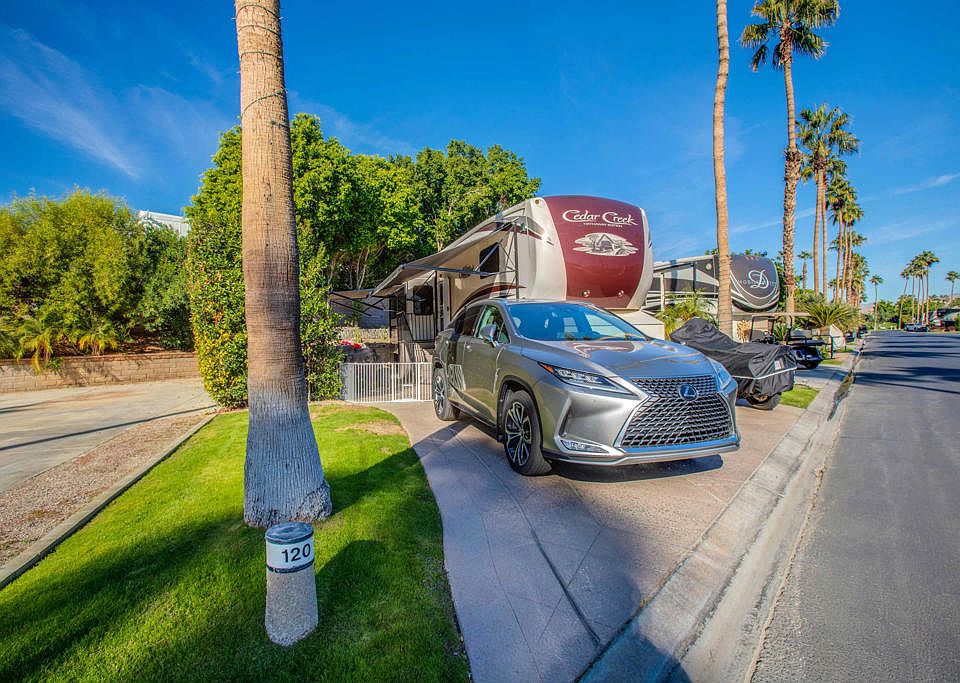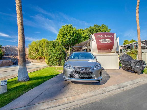 Elevate your RV lifestyle with this captivating vacant lot, a true gem in the realm of recreational living. Nestled within an exclusive community, this gorgeous wall lot has undergone a thoughtful transformation, featuring an upgraded and expanded layout that sets the stage for an unparalleled retreat. The addition of a beautiful retaining wall not only adds structural appeal but also enhances the overall aesthetic of the space. As the sun sets, the magic continues with enchanting landscape lighting, casting a warm glow that transforms the surroundings into a dreamy haven.Outdoor Resorts Palm Springs is a Five Star RV Resort Community combining luxury with affordability. It is a guard gated resort that sits on 137 beautifully landscaped acres with 27 holes of executive golf, 10 tennis courts, 13 pickleball courts, 8 swimming pools, a fully equipped fitness center, espresso bar, sports bar, beauty salon/barber shop, full-service restaurant, convenience store, 2 club houses, activities, special events and so much more.