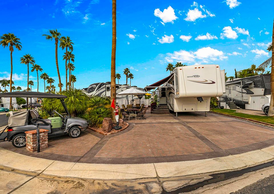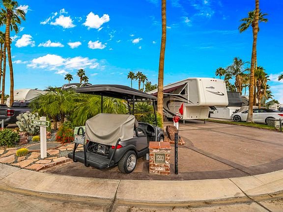 Experience one of the most exceptional RV lot packages at Outdoor Resort Palm Springs. Perfectly positioned on an oversized corner lot along the golf course and overlooking a stunning double-fountain lake, this property offers unmatched beauty, privacy, and space.The package includes an immaculate 2006 Teton--one of the nicest you'll find--featuring a washer, dryer, and gorgeous picture-perfect views right out the back toward the lake. The outdoor areas are fully furnished and beautifully arranged to take full advantage of the sweeping water and fairway vistas, creating effortless indoor-outdoor living.This is a turnkey opportunity--furnished inside and out--and an ideal retreat for those who want a premium lot in one of the desert's most desirable five-star RV resorts. Truly a spectacular setting, move-in ready, and a rare offering in ORPS.Outdoor Resorts Palm Springs is a Five Star RV Resort Community combining luxury with affordability. It is a guard gated resort that sits on 137 beautifully landscaped acres with 27 holes of executive golf, 10 tennis courts, 13 pickleball courts, 8 swimming pools, a fully equipped fitness center, sports bar, beauty salon/barber shop, full-service restaurant, 2 club houses, activities, special events and so much more.
