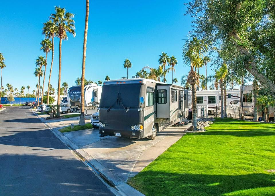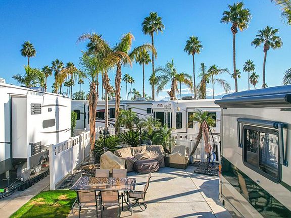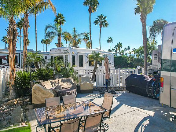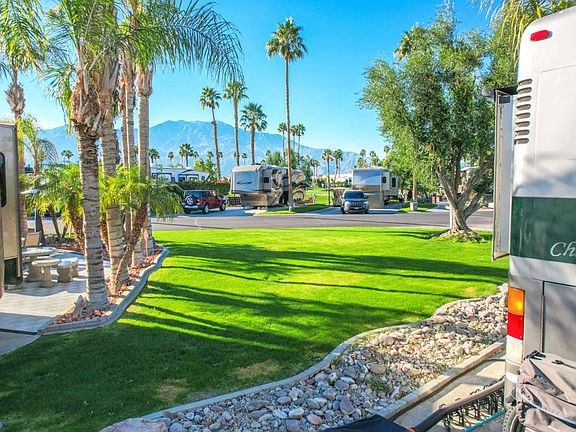 Embrace the allure of resort living with this exquisite corner lot, boasting a large greenbelt to the side for added space and privacy. Perfectly situated adjacent to the La Palma Clubhouse, this prime location offers unparalleled access to top-notch amenities. You're just a short stroll away from a modern fitness center, a delightful restaurant, professional tennis courts, and a relaxing pool and spa area. This vacant lot presents a unique opportunity to create your dream RV setup, making it an ideal choice for those seeking a blend of tranquility and social engagement.Outdoor Resorts Palm Springs is a Five Star RV Resort Community combining luxury with affordability. It is a guard gated resort that sits on 137 beautifully landscaped acres with 27 holes of executive golf, 10 tennis courts, 13 pickleball courts, 8 swimming pools, a fully equipped fitness center, beauty salon/barber shop, full-service restaurant, convenience store, 2 club houses, activities, special events and so much more.