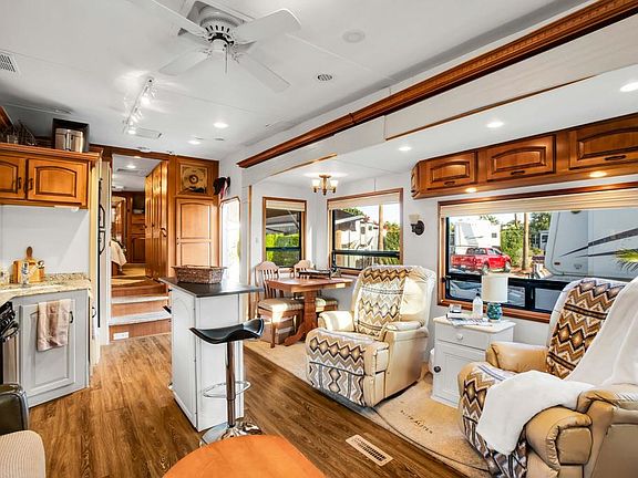 Introducing an exceptional opportunity for those entering the world of resort living: a competitively priced lot/RV package featuring a 2006 Doubletree Elite Suites. This package is the perfect starter set, offering both value and comfort. The RV is complemented by included patio furniture, creating an inviting outdoor living space ideal for relaxation and entertainment. Privacy is a key feature, with mature hedges to the rear of the lot providing a secluded backdrop. This combination of affordability, comfort, and privacy makes it an attractive option for anyone looking to enjoy the perks of resort-style living without breaking the bank.Outdoor Resorts Palm Springs is a Five Star RV Resort Community combining luxury with affordability. It is a guard gated resort that sits on 137 beautifully landscaped acres with 27 holes of executive golf, 10 tennis courts, 13 pickleball courts, 8 swimming pools, a fully equipped fitness center, beauty salon/barber shop, full-service restaurant, convenience store, 2 club houses, activities, special events and so much more.