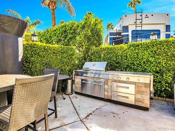Discover a private oasis in the heart of ORPS on this beautiful interior lot. Perfectly situated so that there is minimal afternoon sun on the patio! Conveniently, situated between Satellite B and C, and with easy access to the resort entry/exit, this property offers the perfect blend of tranquility and convenience. Mature Ficus trees envelop the lot, creating a serene and secluded escape from the everyday. Enhancing the outdoor living experience is a built-in outdoor kitchen and BBQ, perfect for entertaining friends and family in the idyllic desert climate. Also included is a large wrought iron,mosaic tile topped, dining table with 8 chairs & cushions, and a deck box. Outdoor Resorts Palm Springs is a Five Star RV Resort Community combining luxury with affordability. It is a guard gated resort that sits on 137 beautifully landscaped acres with 27 holes of executive golf, 10 tennis courts,13 pickleball courts, 8 swimming pools, a fully equipped fitness center, sports bar, beauty salon/barber shop, full-service restaurant, 2 club houses, activities, special events and so much more.All offers considered!