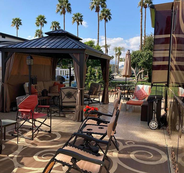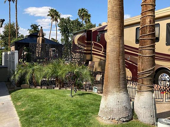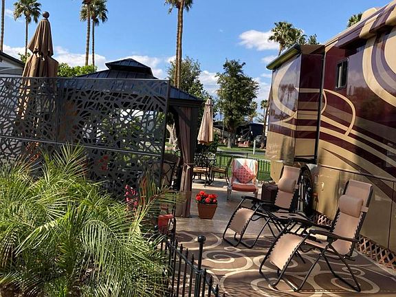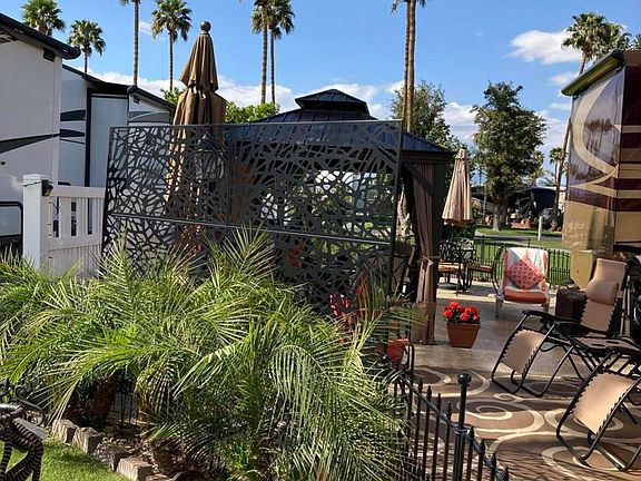 Welcome to gorgeous lot 434. Truly one of the most beautiful lots in Outdoor Resorts. So many oooohs and ahhhhs! First we start off with a custom gazebo, sparkly golden firepit, a couple different seating areas and a large green grassy area located behind lot offering incredible views and privacy. Gold golf cart also included with newer batteries. The sellers of lot 434 have certainly shown pride of ownership. Take a drive by and see for yourself. Contact me with any furthur questions.