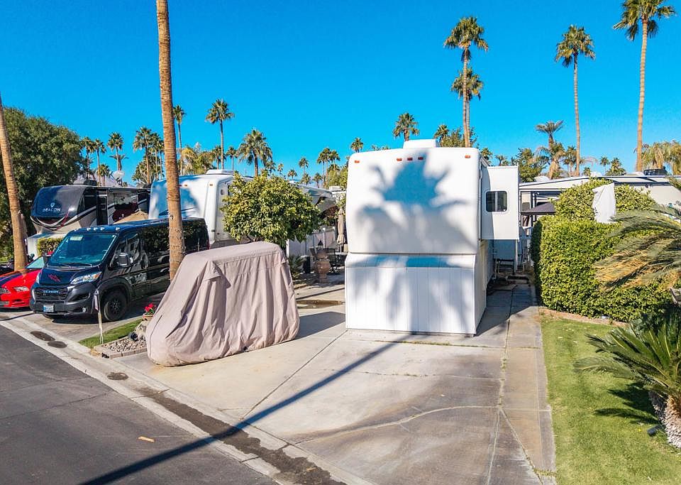This expanded interior lot offers the perfect combination of privacy and convenience. Mature hedging to the rear and good neighbor fencing on the patio side create a serene outdoor space. Located near Satellite B, the lot includes patio furniture, a BBQ, an umbrella, and an outdoor heater, making it move-in ready for your resort living needs. Enjoy a peaceful retreat with all the comforts of home!Outdoor Resorts Palm Springs is a Five Star RV Resort Community combining luxury with affordability. It is a guard gated resort that sits on 137 beautifully landscaped acres with 27 holes of executive golf, 10 tennis courts, 13 pickleball courts, 8 swimming pools, a fully equipped fitness center, espresso bar, sports bar, beauty salon/barber shop, full-service restaurant, convenience store, 2 club houses, activities, special events and so much more.