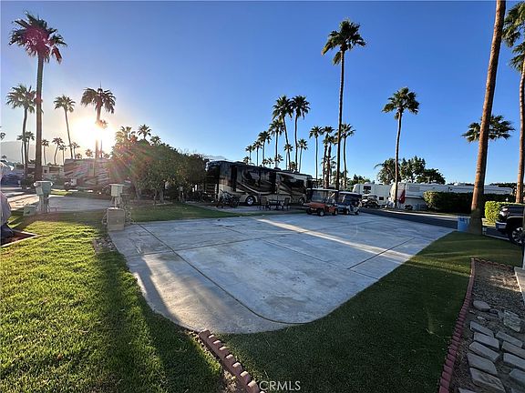Well-maintained Lot 51 located in Phase 1 of the prestigious Outdoor Resorts Palm Springs RV Resorts Community. This property features clean concrete surfaces, vinyl fencing, a majestic palm tree, astroturf lawn with a small planter, and is surrounded by friendly neighbors. Ideally situated close to the La Palma Clubhouse, mailroom, pool, tennis courts, gym, and café, as well as Satellite A, which offers additional pool, spa, laundry, shower facilities, and tennis courts. Enjoy resort-style living in this vibrant, guard-gated community featuring 137 beautifully landscaped acres, featuring:27 holes of executive golf, 10 tennis courts and 13 pickleball courts, 8 sparkling swimming pools, fully equipped state of the art fitness center, cafe, on-site salon/barber shop, two clubhouses hosting year-round activities, events, and entertainment. Whether you’re seeking an active social scene or a peaceful retreat, Outdoor Resorts Palm Springs delivers the best of both worlds. This is more than just a lot—it’s a lifestyle!