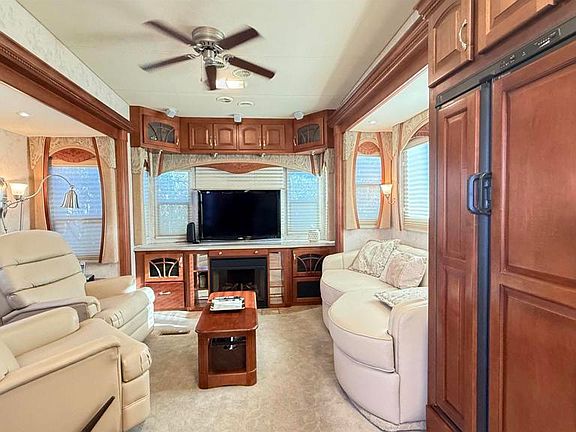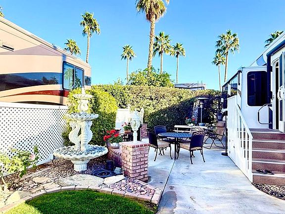 Beautiful Lot 525 is on a very private street just east of the La Palma clubhouse and near satellite B. The concrete pad is in great shape with meticulous landscaping, a clean clean space. The 2008 Teton Experience, 39’ is well cared for with a stunning interior. Outdoor Resort Palm Springs (ORPS) is a Guard Gated 5-Star RV Resort Community offering an active and luxurious lifestyle featuring golf (27 holes), tennis, pickleball, swimming and more! Two clubhouses, fitness center, beauty solan, La Roma Restaurant on campus, dog park and more!