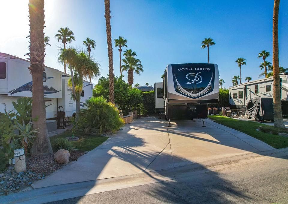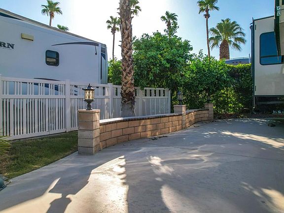 Nice lot on a quiet street across from the orchard with large privacy hedges, a nice pony wall and is located close to a satellite. Outdoor Resorts Palm Springs is a Five Star RV Resort Community combining luxury with affordability. It is a guard gated resort that sits on 137 beautifully landscaped acres with 27 holes of executive golf, 10 tennis courts, 13 pickleball courts, 8 swimming pools, a fully equipped fitness center, espresso bar, sports bar, beauty salon/barber shop, full-service restaurant, convenience store, 2 club houses, activities, special events and so much more.
