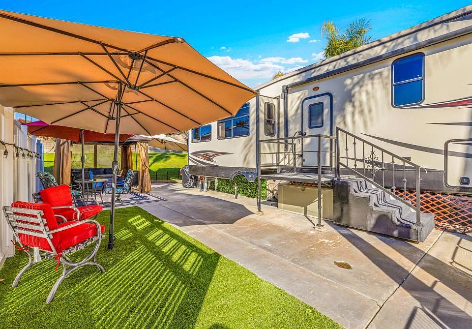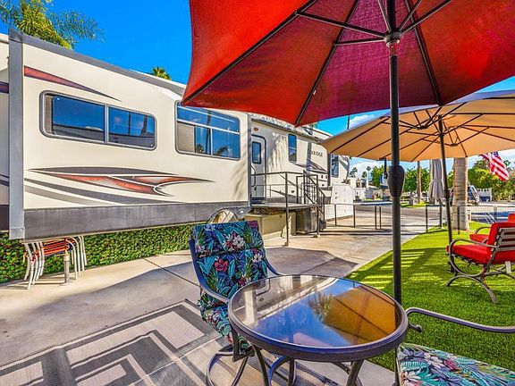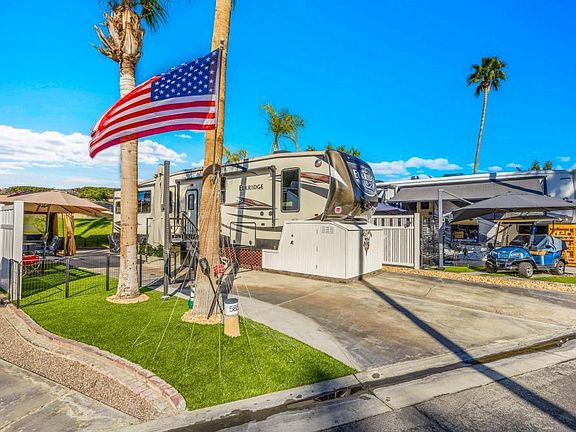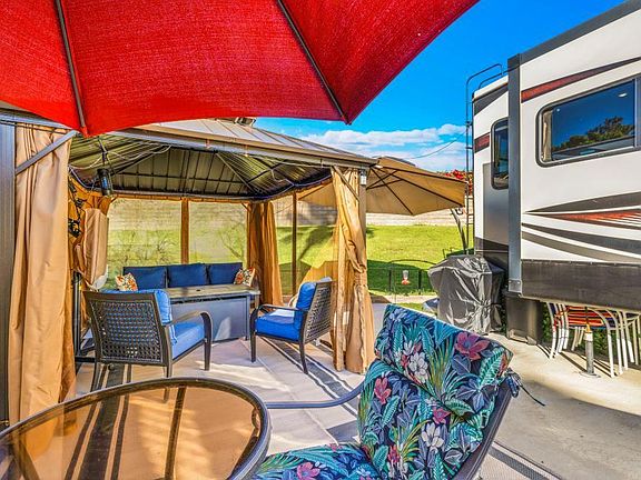 Here's an appealing opportunity. This super nice package includes a 2017 Heartland Elkridge bunkhouse, an exceptionally versatile unit perfectly configured to function either as comfortable guest accommodations or as a dedicated, private office space, offering considerable flexibility to suit various needs.The accompanying lot has been meticulously enhanced, featuring the installation of premium artificial turf for year-round aesthetic appeal and minimal maintenance. Additionally, a new gazebo has been incorporated, establishing a charming focal point within the outdoor area. These thoughtful upgrades collectively create an exceptionally inviting and highly functional exterior environment, ideal for both personal enjoyment and entertaining.Adding to the property's allure is the generously sized greenbelt situated immediately behind the lot. This natural expanse not only provides a picturesque and serene backdrop but also offers an enhanced sense of privacy and openness. This combination of an upgraded outdoor living space and direct access to a natural greenbelt makes this location particularly well-suited and accommodating for pet owners.