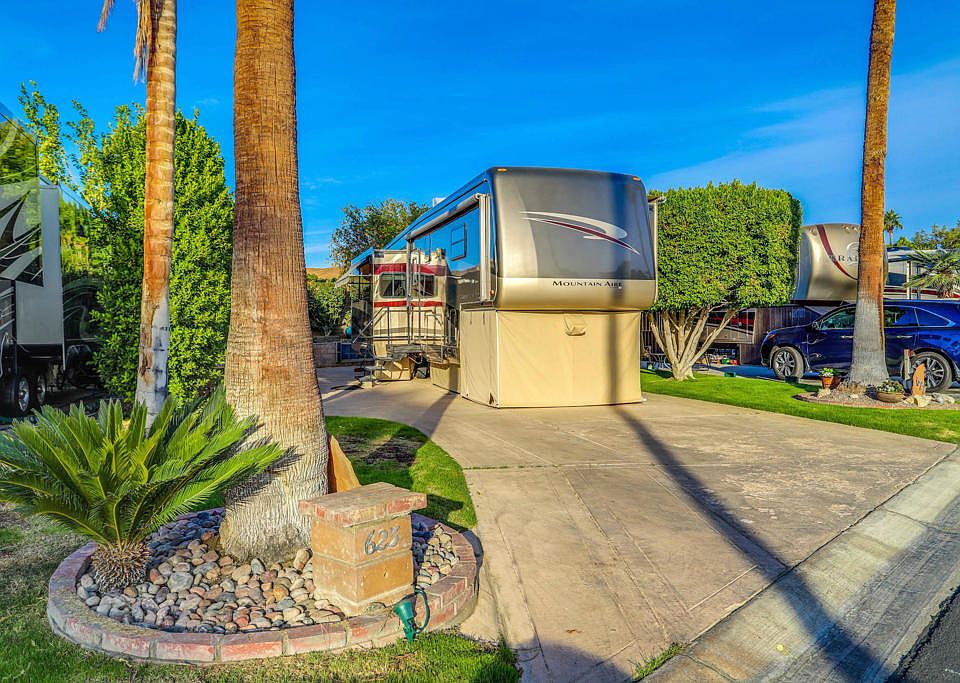 Very private wall lot that has gorgeous hedges for complete privacy. This lot is located steps away from Satellite D and a short distance from the El Saguaro clubhouse. Pretty lot with a great location.Outdoor Resorts Palm Springs is a Five Star RV Resort Community combining luxury with affordability. It is a guard gated resort that sits on 137 beautifully landscaped acres with 27 holes of executive golf, 10 tennis courts, 13 pickleball courts, 8 swimming pools, a fully equipped fitness center, espresso bar, sports bar, beauty salon/barber shop, full-service restaurant, convenience store, 2 club houses, activities, special events and so much more.