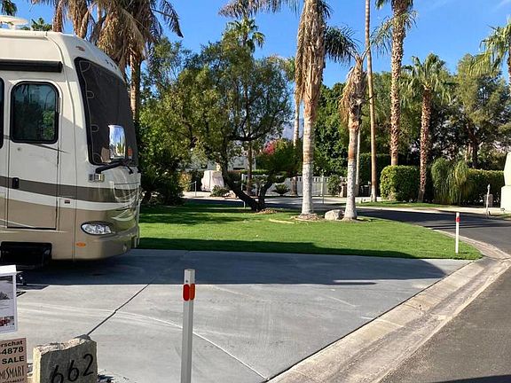 Great location! LOT ONLY-Conveniently located steps away from the pool/spa, laundry and shower facilities. Wonderful corner lot with no neighbor on one side. Nicely desert-scaped with artificial turf and lighting on posts creating a lovely night time cocktail hour. Two greenbelts across and next to you. Pretty views too.Don't miss this opportunity to own here at Outdoor Resorts Palm Springs.*RV SOLD SEPARATELY