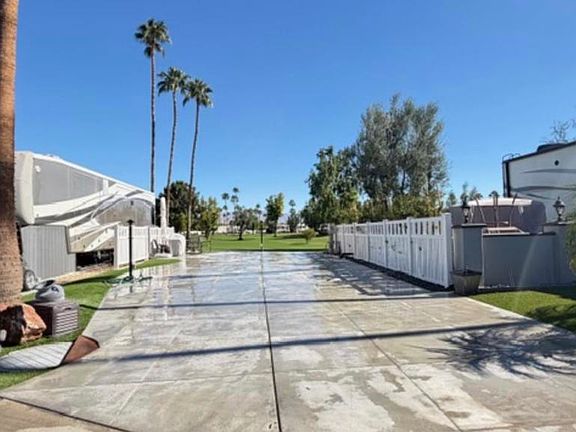 Lot 764, GOLF COURSE frontage with newly expanded and extended concrete pad sits near hole 2 of the 18 golf course mid-resort. This location is close proximity to the El Saguaro clubhouse, starter shack, pickleball courts, and Satellite D with pool and jacuzzi. All beautiful golf course views are at your rear and gorgeous Mountain View’s to the west. The lot is oriented east to west. Outdoor Resort Palm Springs (ORPS) is a Guard Gated 5-Star RV Resort Community offering an active and luxurious lifestyle featuring golf (27 holes), tennis, pickleball, swimming and more! Two clubhouses, fitness center, beauty solan, La Roma Restaurant on campus, dog park and more!