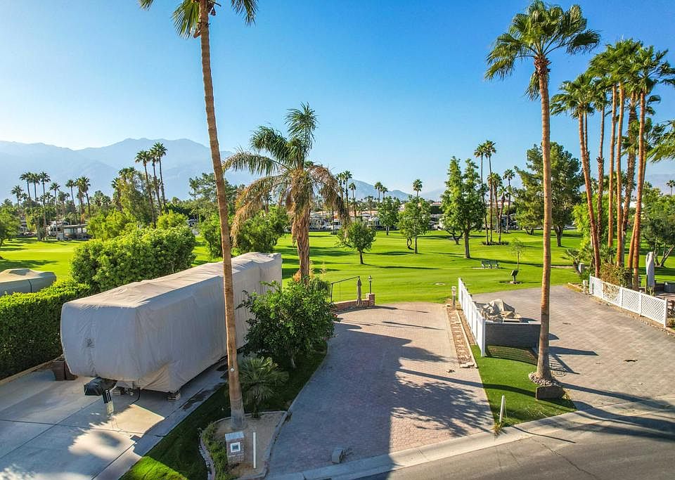 Nestled along the picturesque 15th hole, this exquisite golf course lot beckons to those with a discerning eye for premium real estate. Enhanced with tasteful pavers and a charming pony wall, this canvas is primed for your vision of a dream RV lot. Craft your perfect haven in this sought-after location and indulge in the allure of luxury RV living. Outdoor Resorts Palm Springs is a Five Star RV Resort Community combining luxury with affordability. It is a guard gated resort that sits on 137 beautifully landscaped acres with 27 holes of executive golf, 10 tennis courts, 13 pickleball courts, 8 swimming pools, a fully equipped fitness center, espresso bar, sports bar, beauty salon/barber shop, full-service restaurant, convenience store, 2 club houses, activities, special events and so much more.