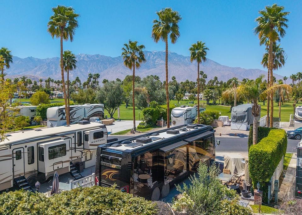 Experience tranquility on this golf course adjacent wall lot, designed for ultimate privacy and relaxation. Mature hedging along the patio side creates a secluded outdoor living space, while a lush greenbelt behind the lot enhances the sense of serenity. Enjoy breathtaking mountain views from the front of the property, providing a stunning backdrop to your desert lifestyle. This lot offers the perfect blend of natural beauty and secluded comfort. Outdoor Resorts Palm Springs is a Five Star RV Resort Community combining luxury with affordability. It is a guard gated resort that sits on 137 beautifully landscaped acres with 27 holes of executive golf, 10 tennis courts, 13 pickleball courts, 8 swimming pools, a fully equipped fitness center, espresso bar, sports bar, beauty salon/barber shop, full-service restaurant, convenience store, 2 club houses, activities, special events and so much more.