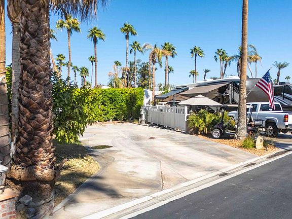 Uncover the ideal beginning for your dream vision with this strategically positioned gem of a starter lot. Boasting a prime location near the resort entry/exit and the La Palma Clubhouse, convenience is at your doorstep, granting swift access to an array of amenities. Enhanced by fencing on both sides and mature hedges at the rear, the property offers an oasis of privacy. Further, the lot has been thoughtfully extended and expanded to provide additional outdoor living space, creating the perfect backdrop for your vision. This blank canvas invites you to envision and design your dream retreat, presenting boundless possibilities in a location that seamlessly blends comfort and convenience.Outdoor Resorts Palm Springs is a Five Star RV Resort Community combining luxury with affordability. It is a guard gated resort that sits on 137 beautifully landscaped acres with 27 holes of executive golf, 10 tennis courts, 13 pickleball courts, 8 swimming pools, a fully equipped fitness center, beauty salon/barber shop, full-service restaurant, convenience store, 2 club houses, activities, special events and so much more.