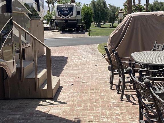 Experience resort living on exquisite lot # 889 featuring a 2018 Mobile Suites 44' Houston. Offering upgraded brickwork, fairly spacious greenbelt located behind lot and directly across you will enjoy gorgeous views of the golf course. The Mobile Suites has $56K in upgrades which include cherry wood, custom kitchen tiled backsplash, power recliners and a sleep number bed. Bath & 1/2-washer/dryer, custom stairs and dog house included.Rv gently used and in next to new condition. Misc. outdoor furnishings included.Golf cart negotiable.GREAT TIME TO GET A SUMMER DEAL!