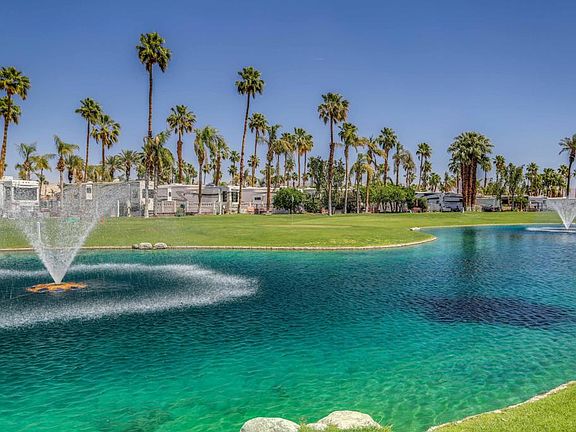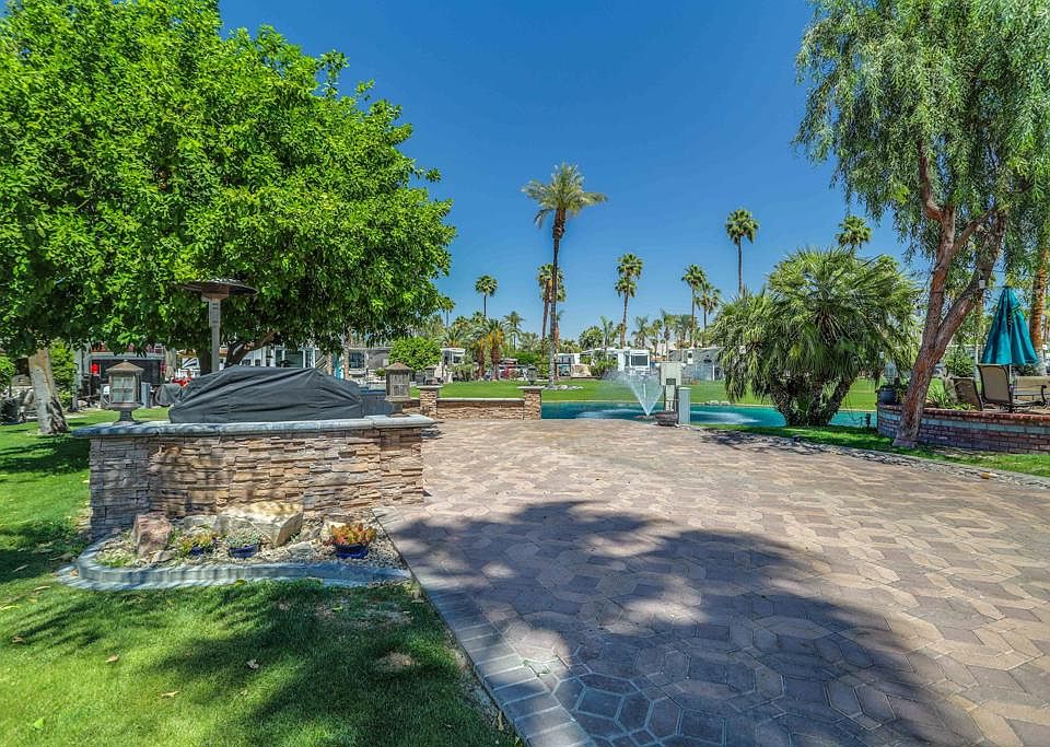 Legendary golf course, oversize, corner, lake lot. This lot is simply magical. It is located on the golf course a lake with a fountain behind it and a big green belt next to you on your patio side. It is a one of a kind lot that has been remodeled, extended with pavers and a has a privacy wall. Patio furniture and BBQ are all included with the lot. Outdoor Resorts Palm Springs is a Five Star RV Resort Community combining luxury with affordability. It is a guard gated resort that sits on 137 beautifully landscaped acres with 27 holes of executive golf, 10 tennis courts, 13 pickleball courts, 8 swimming pools, a fully equipped fitness center, espresso bar, sports bar, beauty salon/barber shop, full-service restaurant, convenience store, 2 club houses, activities, special events and so much more.