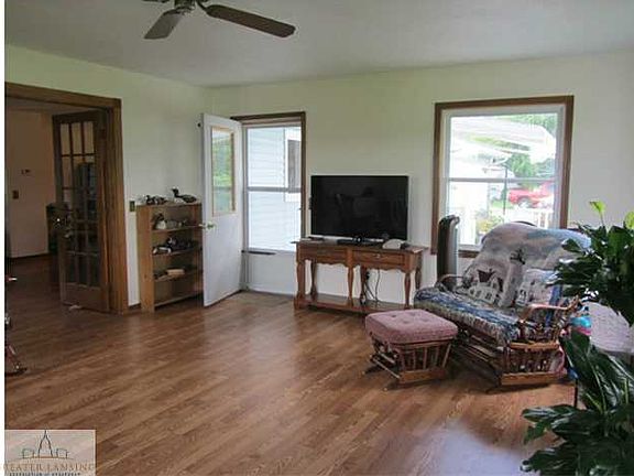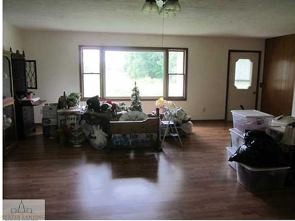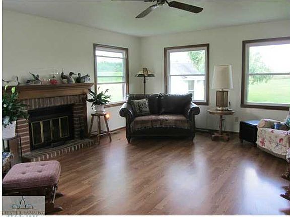 Country, Private and Peaceful on 5 Acres and ready for new owners. This custom built ranch home is 2000 sq ft, 3 bedrooms, open floor plan with great room, and finished lower level. The property has a small pond in the front with lots of wildlife visiting, there are cornfields to the west and south, large shed, playhouse custom designed for the granddaughter, another shed for storage, the back deck has a new Sunsetter shade that is full auto remote and equipped with wind sensor. The owners had a mobile home on the property with water and sewer that is capped off and could be used if the new owner has the desire for a new pole barn or another home. This home opens the front door to a large open great room for living room and dining room connecting to the large kitchen with all custom made cabinets. Lots of space in the kitchen with stainless steel appliances and a sit up breakfast bar. The sunroom is wonderful with a fireplace that was converted to gas surrounded by windows to enjoy the scenery. The master bedroom is very spacious and has walk in closet and master bath with lots of cabinets for storage, the 2nd bedroom on the main floor was originally 2 bedrooms and now a large bedroom with lots of space, also the laundry is convenient on the first floor. The lower level is finished with many rooms, the owner has a bedroom, rec room, study or media room and a spacious workroom where he was a meticulous wood craftsman with great pride in all his woodworking.