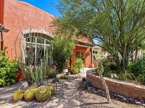 Life's too short for a Boring House! Architectural Drama, Impressive Upgrades, Awe Inspiring Setting, paradoxically nestled in the serenity of the Sonoran Desert yet mins frm Cave Creek/Carefree active artsy lifestyle. Custom 2000 build,the bespoke territorial accents: curved walls&breakfast bar, arched and bay windows, vigas, niches, alder cabinetry&doors throughout, stone tile flooring w/inlay designs, lrg open rooms, tastefully refined lighting combined with advanced security tech, premier appliances, dualpane wndws & meticulous maintenance w/warranties. 4th BR Suite opens to private patio in delightful Black Mtn facing front Courtyard. Office/Den private enough for multiuse. Magnificent Landscaping framed by Mountains in all directions. View Deck. Pool. Waterfall. Prepare to be awed!