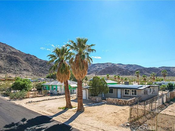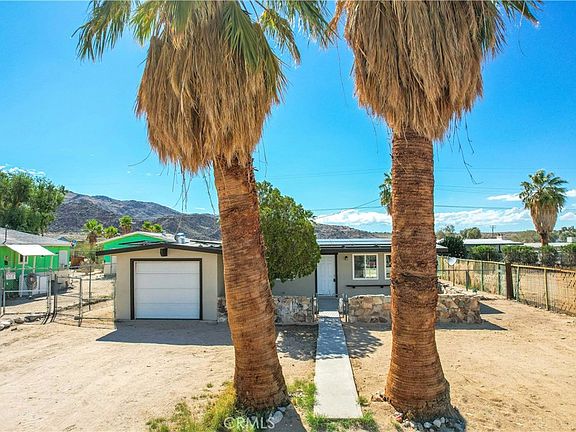 This AFFORDABLE 1,640 square foot, 4-bedroom, 2-bathroom home is the perfect blend of comfort and functionality. With FULLY PAID solar panels, NEW Roof, newer windows, Central AC, and an evaporative Cooler this home has it all. First, you will notice that you have phenomenal curb appeal with the large palm trees and the front courtyard. As you step inside, you'll notice there is tile throughout the common areas. Recent updates include stunning granite countertops in the kitchen, fresh paint throughout, new lighting throughout, and newer carpet in all the bedrooms. The backyard is fully fenced and also has a double gate allowing access to the backyard. One of the standout features of this home is the breathtaking mountain views from the back patio area. Imagine sipping your morning coffee or enjoying a barbecue with friends and family while soaking in the stunning vistas of the desert landscape. Located in the serene community of 29 Palms, you'll enjoy the tranquility of desert living while still being within easy reach of amenities, schools, and the world-famous Joshua Tree National Park. Whether you're looking for a permanent residence or a weekend retreat, this home offers the perfect balance of comfort, convenience, and natural beauty. Don't miss your opportunity to own this delightful 4-bedroom desert gem. Schedule a showing today and start living the 29 Palms dream!