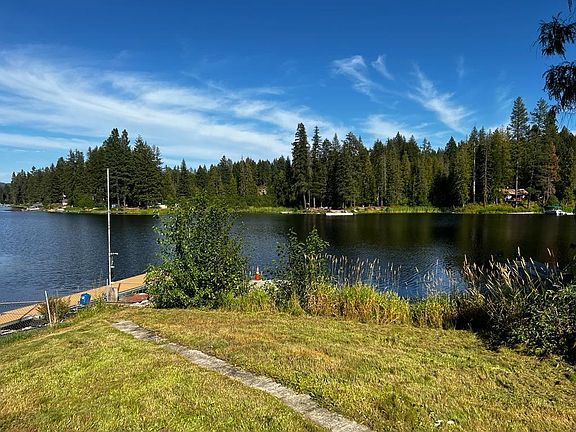 Sacheen Lake waterfront! 3 bed 1 bath cabin, along with a 1 bed 1 bath apartment each with its own deck. Tongue and groove pine interior with wood floors. Front-facing water views. Metal roof. Private sewer (not Sacheen), well, fiberoptic available, and leased propane tank. Space for fireplace/stove in living room. Off-street parking. Complete with its own dock.