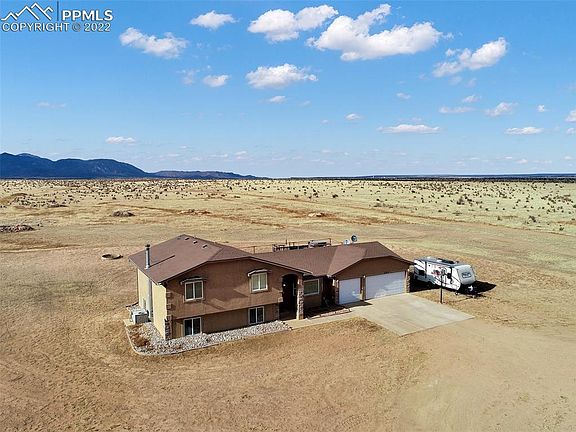 Wow! almost 7 acres with a 700+ acre non-buildable open space/ Ft. Carson Buffer as your back yard... Larger five bedroom, three bath, three car garage with low maint. stucco and stone exterior. Peaceful, private, and tremendous mountain views including Cheyenne mountain, and Pikes Peak.