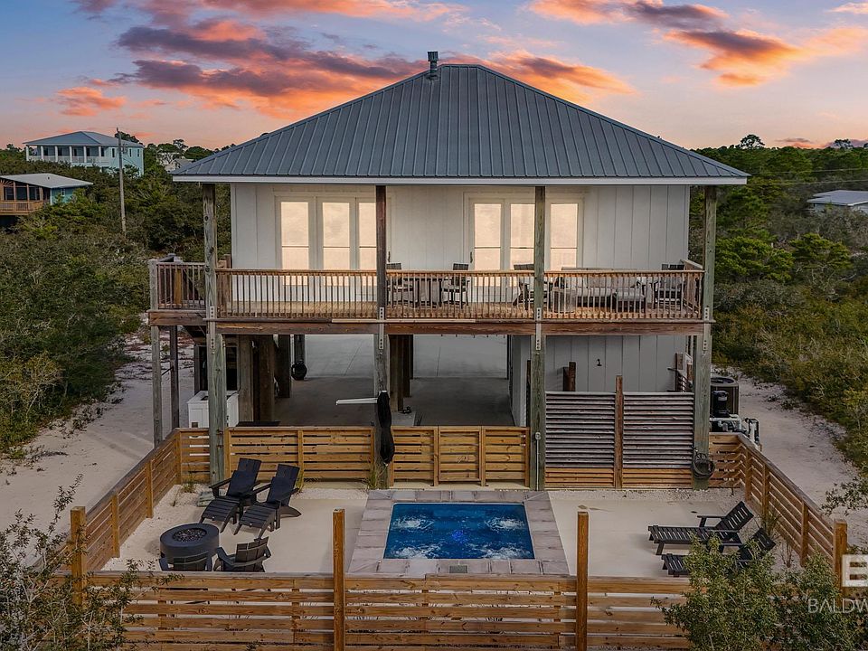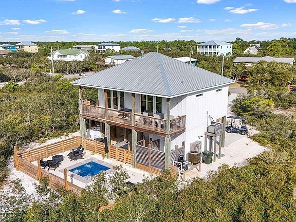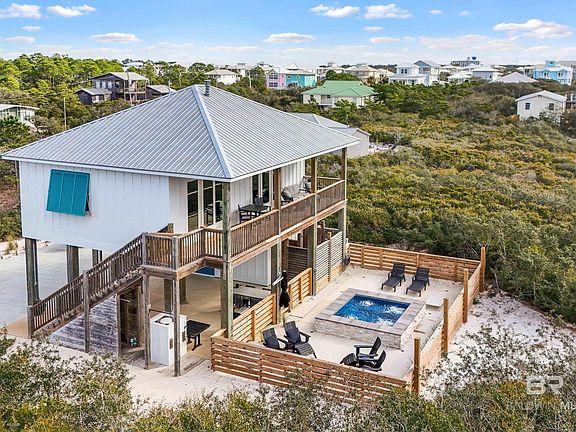 This exquisite beach house offers coastal living combined with elegance. The home features hardwood floors throughout, high ceilings, a gas fireplace, quartz countertops, custom cabinets, and top-of-the-line appliances. The home is designed with luxury and comfort in mind, offering modern fixtures and luxurious finishes, ensuring a spa-like experience at home. Relax in the heated and cooled cocktail pool, surrounded by natural vegetation. The HeatPro controls the pool temp for under $250/month.The home is located in an X Flood Zone. The lot’s elevation is 24 ft, in addition to the 12 ft tall 12 inch pilings. Flood insurance is not needed or required. Offering the highest rated impact windows/doors and Bahama shutters for extra protection, the structural engineer fortified the home in compliance with Alabama Gold Standard, lowering your insurance premiums significantly. Currently our rate is $5.800/year as a second home via Frontline.The fire pit, fireplace, oven, and the tankless hot water heater run from the 120 Gallon propane tank. It is on autofill with Blossman gas, so you never have to think about it. The driveway and the patio have hardwired drive-over lights that are controlled by a dusk until dawn timer. This turnkey property is sold with high-end furnishings. It was listed with Beats Working Vacation Rentals on March 23rd, 2024. It is booking for the Spring for $269-$399 and in the Summer for $499 - $599, with real revenue of $70K in 2024 and Projected $100K in 2025. The Surfside Shores HOA dues of $200 per year are voluntary. Buyer to verify all information during due diligence. There is a voluntary HOA that you can choose to be a member of but not required. Please check the documents tab for more info!!