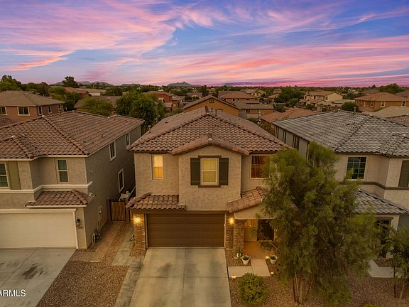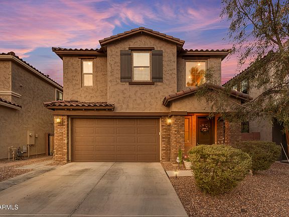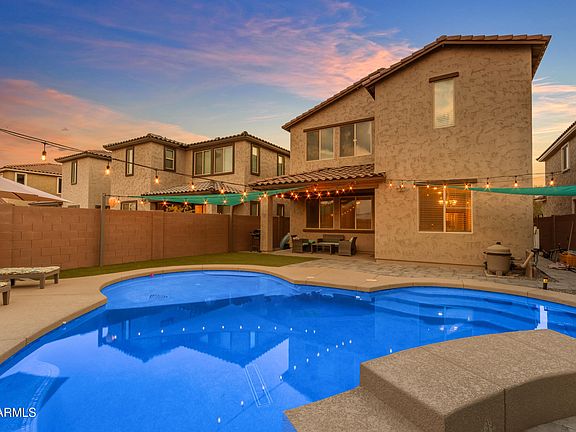 This Turn Key 5-Bedroom Home with a Pool, Gourmet Kitchen, and Prime Location 1 mile from the Arizona Cardinals Stadium. This magnificent 2,466 sq. ft. residence boasts 5 spacious bedrooms and 2.5 luxurious bathrooms, perfectly blending comfort and style. Step into the heart of the home—a gourmet kitchen designed for the culinary enthusiast! Featuring granite countertops, a double oven, gas cooktop, and wood-look tile flooring, this kitchen is both functional and elegant, ready to inspire your inner chef. The open floor plan seamlessly connects the kitchen to a spacious living area, ideal for entertaining or cozy family gatherings with 9ft+ Ceilings downstairs as well as upstairs. Escape to your private backyard oasis, meticulously landscaped with turf and showcasing a brand-new pool with massive baja shelf. This outdoor haven is perfect for relaxing under the Arizona sun or hosting unforgettable poolside parties. This incredible property is just 1 mile from the Arizona Cardinals Stadium and the exciting new Via Resort, placing you in the heart of Glendale's vibrant entertainment district. Don't miss this rare opportunity to own a slice of paradise with proximity to world-class entertainment, dining, and shopping. Outdoor Projector, Roku, and Outdoor Screen with Attachments can stay with the new owner for Movie nights or to entertain when friends and family are over.