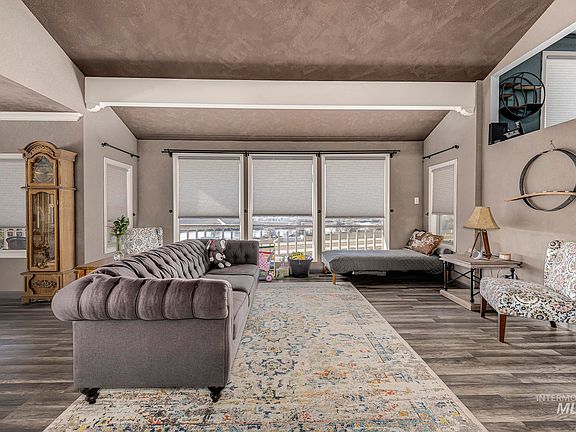 The most beautiful views looking over the valley and river. Sit on your deck and watch the sun set. Home sits in a park-like setting and is very private. Multiple fruit trees, peach, nectarine, cherry.  Room for a garden and have room for horses, a cow, chickens or whatever your heart's desire. Home has lots of areas to spread out. New carpet, custom window coverings, newer flooring, includes kitchen fridge, washer & dryer 2 fireplaces wood Buring. This home is unique and a must see if you're looking for lots of room and beautiful views.