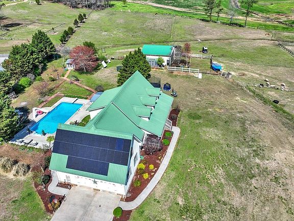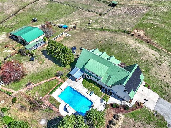 Welcome to Your Dream Homestead! Nestled on 6.3 acres of lush land, this property offers the ultimate retreat for those seeking a blend of modern comfort and sustainable living.This 4 bd 3 bath homestead is meticulously designed to cater to every aspect of your lifestyle.As you step onto the property, you're greeted by an enchanting inground saltwater pool, perfect for unwinding or hosting unforgettable gatherings with friends and family. Adjacent to the pool, a charming greenhouse stands.For those farming aspirations, a spacious barn provides ample room for livestock or storage of equipment.Embrace sustainability with a solar power system, ensuring that your energy needs are met in an environmentally conscious manner.Additionally, a well provides abundant water for both plants and animals.Beautifully surrounded by mature fruit trees, garden space, fenced, and views of the land, this homestead offers endless possibilities for self-sufficiency and serenity.
