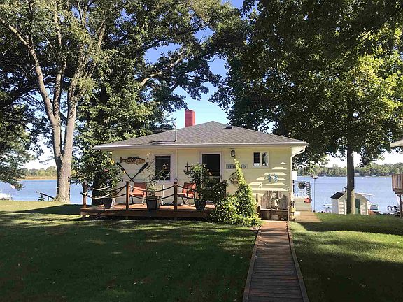 Welcome to Bruce Lake! Move in ready remodeled lakefront 2 BR 2 bath home with finished walk out basement. Featuring 4 lots: lake house sits on 40'x212' lot of main lake; across the street are 3 lots w/ 28x30 detached garage and plenty of parking spaces. So many updates inside: new carpet in upstairs BR's and LR; new laminate wood flooring in kitchen, all appliances included; bath upstairs has tiled floor and shower, new vanity with granite counter top; downstairs bath: walk in shower w/ custom tiled floors/walls, rain head shower system that lets you know when the waters warm with LED lights (Wow!) glass shower doors, mahogany vanity w/black granite top, rough sawn wood walls and custom door. Lower level family room and large lakeside enclosed porch 12x22 is a great spot to watch the lake and relax. Roof on home and garage replaced 2yrs ago; fresh paint inside and out, new interior doors, new deck, new exterior door, and updated 100amp electrical service. Call for a showing and start enjoying lake living NOW!