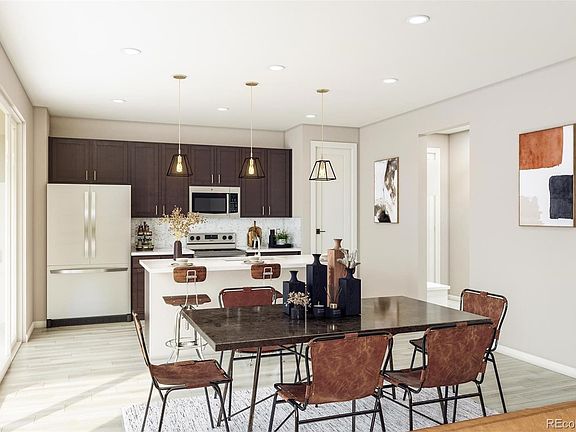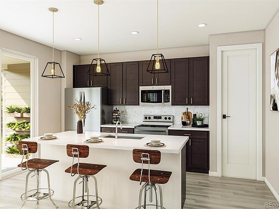 Move-in ready, plus a full finished basement! Includes a covered patio and front yard landscaping. Stylish interior finishes include contemporary wide plank LVP (luxury vinyl plank) flooring on the main level, white cabinetry, quartz countertops and gas stainless steel appliances. The spacious floorplan includes an open great room and kitchen with lots of light and access to the covered patio. Located in the desirable new community, The Canyons. Enjoy the many amenities including the Exchange Coffee house, resort style pool, numerous parks and miles of connecting trail systems. Plus additional amenities coming soon. The Canyons has HOA and Metro District monthly fees/dues. The HOA is $138.75/month and the Metro District is $30/ month. Taxes are TBD - taxes shown are an estimated at approx. 1.21% of purchase price.