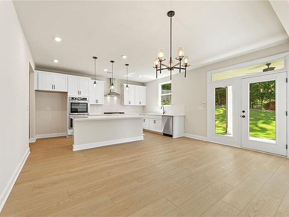 - Features: Cabinets White, Eat-in Kitchen, Kitchen Island, Other Surface Counters, Pantry Walk-In, Stone Counters, View to Family Room