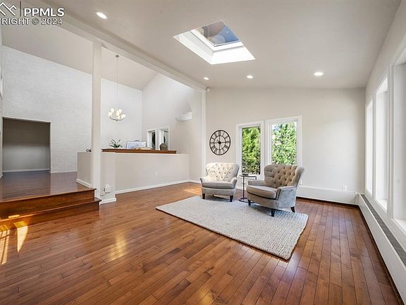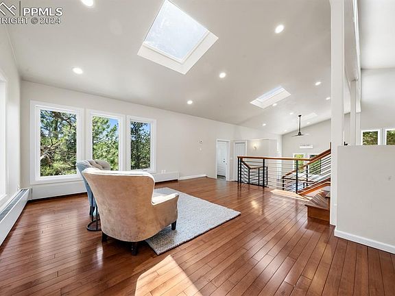 Calling all entertainers and lovers of architecture! Come check out this gorgeous, spacious property in the coveted Rockrimmon area, on ONE ACRE! Tucked among the trees and the wildlife, only minutes from D20 schools and shopping centers, is your DREAM home. Boasting over 4,000 square feet inside and a major renovation, there is a large open floor plan- perfect for hosting or family living. Layered levels create designated areas while connecting the spaces. This is truly a unique property, complete with all the modern updates. The kitchen sports new countertops, cabinets, lighting, stainless steel appliances, dual ovens, and a gas cook top to make a chef's dream. Also on the main level is the primary suite complete with all new bathroom fixtures in the 5 piece bath. The main level connects to two different decks. In the basement, there are three spacious bedrooms and a sunroom- truly an oasis in nature. Don't miss your chance to see this beauty and schedule your showing today! Highlights for this home: new hail resistant roof, all new exterior windows and doors, new boiler and electrical works, newer wood flooring upstairs and carpet downstairs.