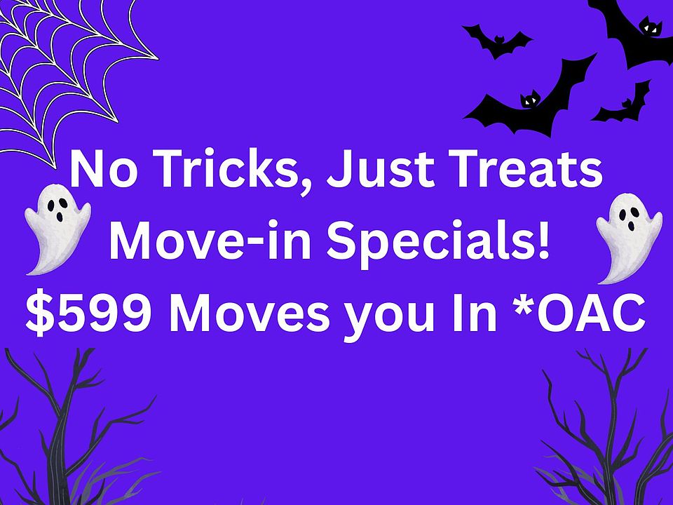 - Special offer! No Tricks, Just Treats - Move in Specials! $599 Moves you in *OACExpires October 14, 2025