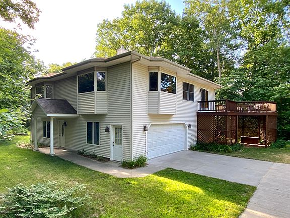 Beautiful 2 bedroom home located on 6.5 acres in Shelby School District. Home is located just minutes from Lake Michigan, Silver Lake, Stony Lake and many other Michigan attractions. Upper level of home offers large living room with gas fireplace and custom built-ins, open kitchen with walk-in pantry, dining area with sliders to huge deck, massive master bedroom with gas fireplace and adjoining bath which includes whirlpool tub and separate shower, private laundry room and half bath. Main level has large tiled entry, family room, full bath and second bedroom. Two stall garage is oversized and also has a large workshop area off to one side. The large private yard has a fire pit, horseshoe pit, garden area and an assortment of beautiful plants through-out. This home would be great for entertaining or just relaxing and enjoying the scenery! Schedule your showing today. Finished sq ft is approximate.