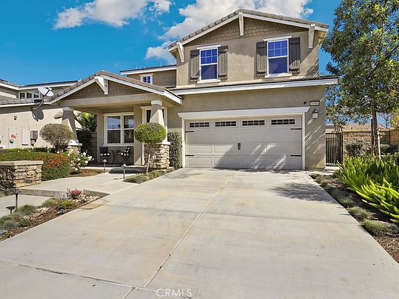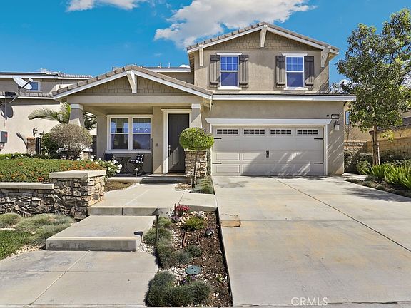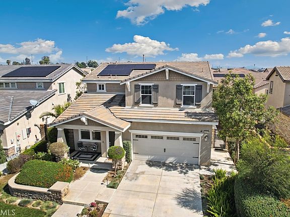 Welcome to this premier smart home with Alexa features, offering a seamless and modern living experience. Located in the Corona-Norco Unified School District. Shows like a model home, equipped with smart features, including a thermostat, interior and exterior lighting, and a Ring Doorbell. Enjoy the comfort of a whole house fan and a high-efficiency HVAC system. Wood-look tile floors flow throughout the downstairs, creating a stylish and low-maintenance living space. The kitchen is a chef's dream with a huge walk-in pantry, center island, granite countertops, and stainless steel appliances, including double ovens. Luxury custom shades, controlled by a smart home assistant, adorn many of the windows, allowing effortless control over natural light. The home is designed for entertainment and connectivity with speakers and Wi-Fi extenders on each floor. One main floor bedroom and bathroom. Upstairs features upgraded carpet, a loft area perfect for an office, a laundry room, a guest bathroom with dual sinks, and three additional bedrooms. The primary bedroom is expansive, featuring a retreat and a walk-in closet with built-in organizers. The primary bath boasts natural stone floors, quartz countertops, and a separate tub and shower. The garage is equipped with an EV charger, and the solar panels on a power purchase agreement contribute to lower electric bills. The backyard is an outdoor oasis with concrete, foliage, and beautiful landscape lighting. Don't miss the opportunity to make this exceptional residence yours!