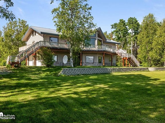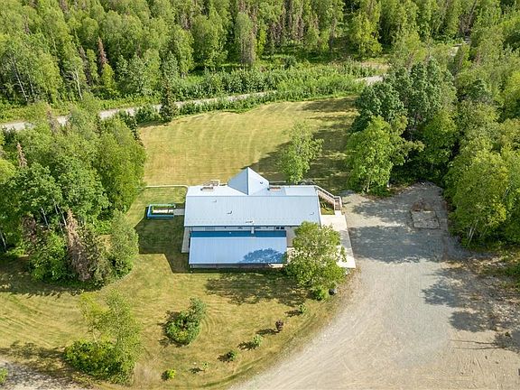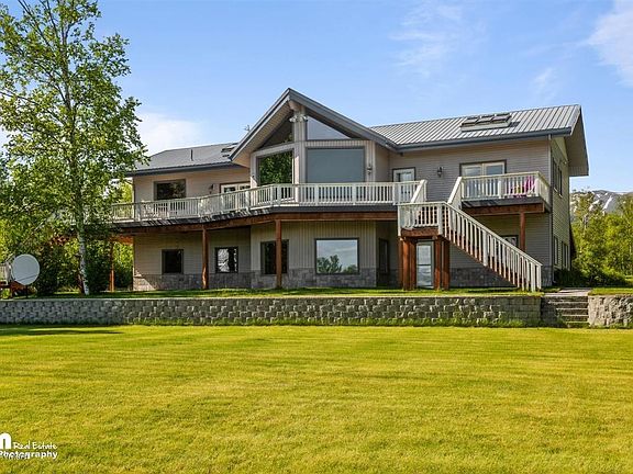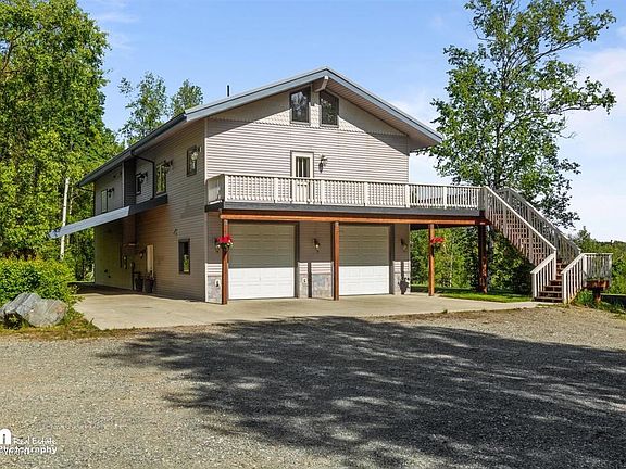 Tucked away on over 6 private acres. Minutes to Hatchers Pass. Thoughtful design with living areas facing unobstructed mountain views. Natural light abound. Enjoy outdoor entertaining on the large deck. Kitchen: Chef's delight! Custom birch cabinets milled from property; granite counters; beverage bar; spacious pantry; built in refrigerator; beautiful Canary wood floors. Roomy Master Bedroom..