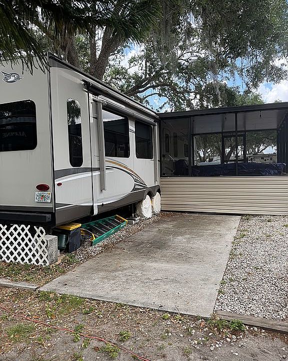 This is a gated, rural, exceptionally clean park with planned activities from October through April. Activities, such as dinners, holiday dances and parties, hired entertainment, bingo, karaoke, fun day, E bike rides, Kentucky Derby, line dance, cornhole, shuffleboard, exercise classes, Bible Study, organized group Cruises, card and board games. Also park store, laundromat, heated pool and exercise room. Great park for walking or riding bicycles. Lot rent for snowbirds approx. $450 a month (seven months in/5 months out); lot rent for 12 month living is approx $500 a month. Lot rent includes pool use, many free activities, cable TV, Wi-Fi, water, sewer, grass cutting, garbage & recycling. Please message me for further information or to schedule a viewing appointment. Located at Quail Run RV park in Wesley Chapel Florida. The park will require a background check to purchase.