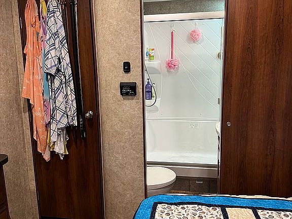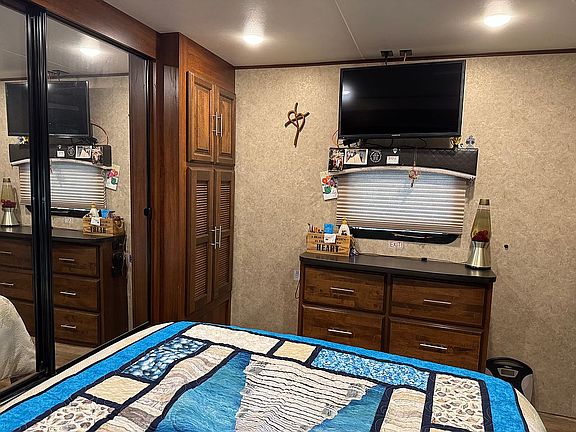 Partially shaded large lot close to activity buildings, pool and laundry. Generous parking for 2+ vehicles. Living room and bedroom TVs, 5 foot shower, ? queen bed.