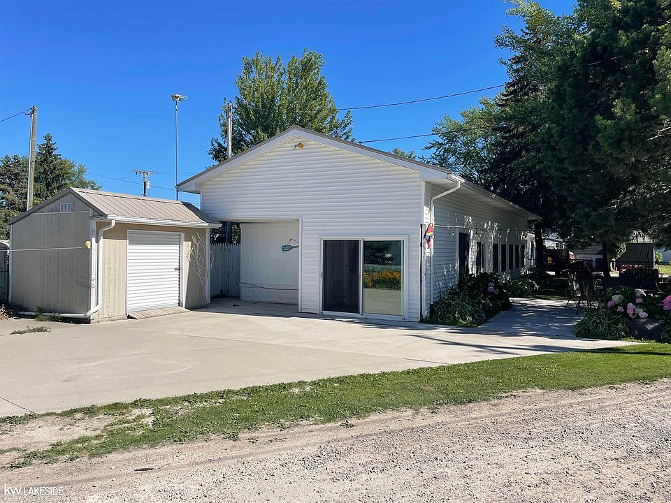 LAKE ACCESS MOBILE HOME WITH ADDITION: Great corner lot setting right across the street from a wonderful sandy beach easement. 2 bedrooms, 1-1/2 baths, new replacement windows, Huge 9'-6" x30'-9" family room with desk space, sleeping space, living space. Second Kitchen 9'-7" x 25' is great for outdoor barbecues or when you need an extra sink to clean your fish. Laminate flooring in all bedrooms, living, dining kitchen. Ceramic tile in the second kitchen area. Quiet street in town with plenty of area to hang out & play. Golf Cart garage, 2 storage sheds, Out door shower with hot & cold water. Recent updates: All new windows w/ 3 new door walls; new furnace & air conditioner; French drain & stamped concrete patio, new cabinets in kitchen & bath; added ½ bath in resident bedroom, new porch, kitchen. 1 year home warranty included with purchase.