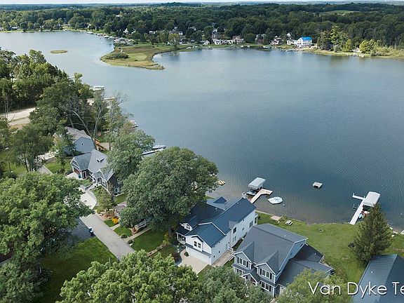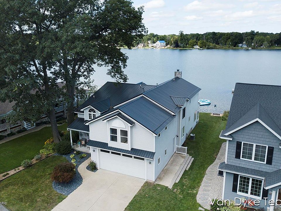 Rare opportunity to own this large, close-to-town, year-round, waterfront home. With 4,118 of finished sq.ft., this 2 story offers 5 large bedrooms, 3 full bathrooms including a master with Jacuzzi, additional laundry room, office and game room with large attached 2 stall garage. Enjoy panoramic sunset views from the master suite, dining room, living room, or under the covered porch. Sandy bottom swim area. Professional landscaping. New carpet, metal roof, and other recent updates. All sports Campau and Kettle Lakes offer the best of water sports, fishing and lake living. Call for a private showing today!
