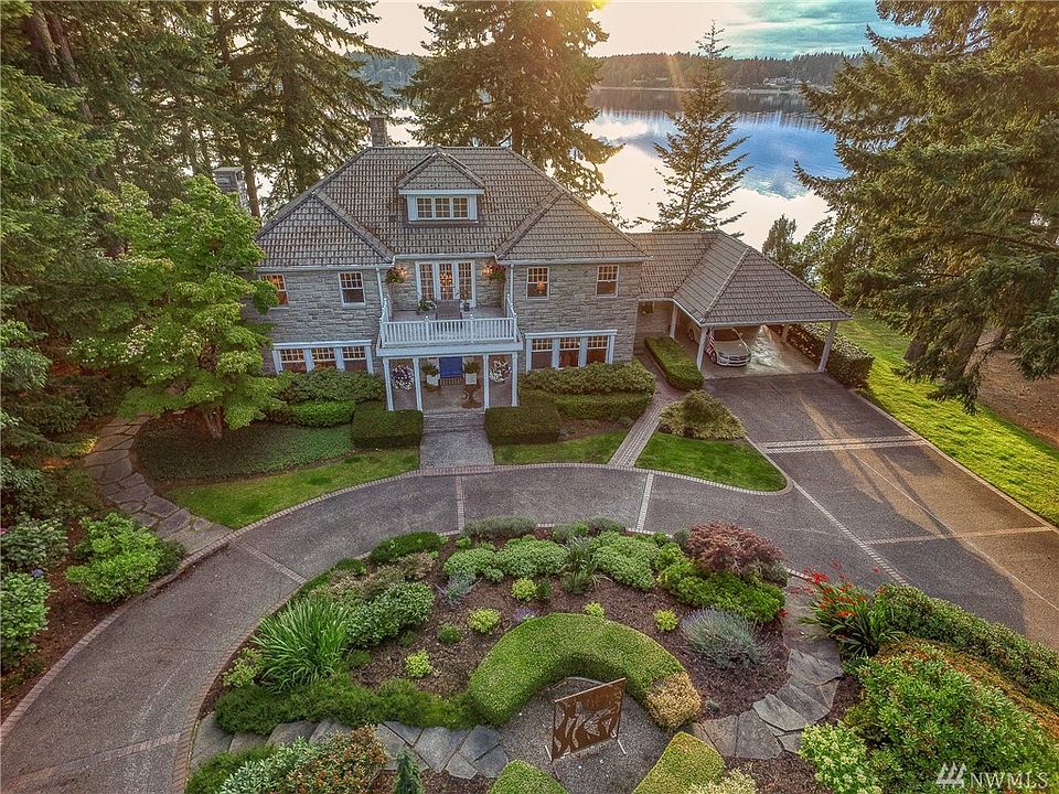 Incredibly handsome Wilkeson stone home accessed via gated entry and accentuated by bedazzling views of Eld Inlet, the Olympics, and Black Hills, and over five acres of beautifully groomed and park-like grounds. One-of-a-kind Cooper Point waterfront estate with exceptional privacy! Low bank 443' of bulkheaded shoreline with pebbly sandy beach and deep water moorage! Beautifully updated home swathed in tradition and finely appointed. A truly stunning statement property!