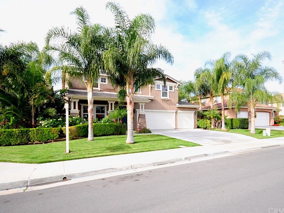 Welcome to this remodeled home located in one the most desirable neighborhoods in Eastvale, with nice curb appeal and beautiful landscaping. It is walking distance to a nearby schools and park. Close to shopping center. 2+ years' New Brazilian Cherry flooring downstairs and carpet upstairs. Cherrywood window coverings, chandeliers and designer decorative lighting fixtures throughout the home. Gorgeous kitchen with huge island, full granite back-splash, gas stove, oven, microwave, dishwasher and refrigerator, pantry and Italian porcelain floors. A casual dining area in kitchen with lovely chandelier. Cozy fireplace in family room with a media niche. Big bonus room with a built-in desk downstairs can be turned into a bedroom or a guest room or use as an office. Formal living room with lots of windows is adjacent to formal dining room with a stunning chandelier. Master suite with ensuite bathroom and 2 (his and hers) separate walk-in closets. All bedrooms feature ceiling fans and mirrored wardrobes. Laundry room located upstairs making chore-time convenient. Other extras: Beautifully tiled patio with wood cover and two ceiling lights/fans, shed in side yard offering additional storage. Look no further, you have found the place you can call "HOME"! Utilities not included, tenant to pay for them. Tenant responsible for landscaping. Pets permitted, $400 pet deposit due upon possession of the property. $150 key and remote deposit due upon possession of the property. 12 month lease. 3 car attached garage and wide driveway.