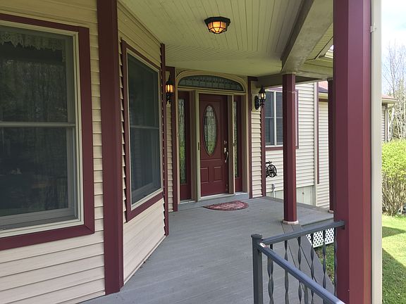 Masterful design & modern luxury. 4 bed 4.5 bath home on just over 10 ac. View of hillsides to N & W. Sunsets! Grand 2 story entry, cherry stairs. Granite & cherry KT w/ formal & informal dining. 1st fl guest suite w/heated tile bath, shower, closet, bonus rm. Master bed w/ walk in closet, bath w/heated tile, Jacuzzi tub, shower, decorative etched glass. Big picture windows! 2nd upstairs bed & connecting bath. 2nd fl office. Big living rm & sprawling deck hot tub & stone patio. Finished basement sports bar family rm, large bed w/ full bath. Garage & circular drive. Stone wall. 1st fl laundry rm w/ half bath, mud rm from garage. Central AC, Hamilton Village Electric! Back abuts preservation land with pond view. Taxes with star exemption only just under $11,000 (zillow isn't correct).