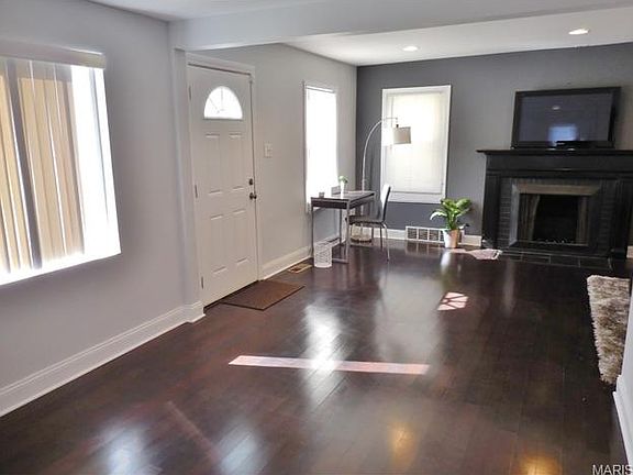 Very nice 2-story home in beautiful Northwoods, MO. The open-concept first floor living room and dining room feature gorgeous wood floors, a wood-burning fireplace, and recessed lighting. You will love the beautiful kitchen adorned with mocha cabinets, granite countertops, tile backsplash, pendulum lights, and stainless steel appliances. The remodeled bathroom offers updated fixtures and nice ceramic tile. This all-brick home is a tremendous value with tilt-in, double-paned windows, a full basement, and off-street parking.