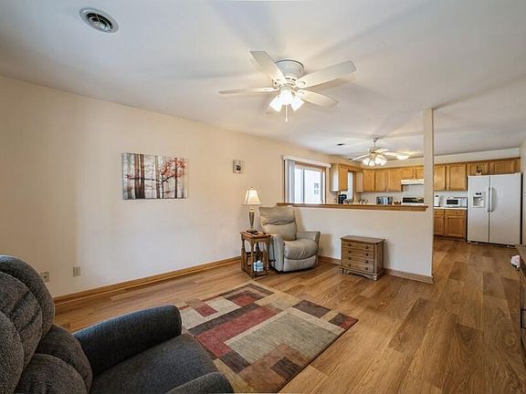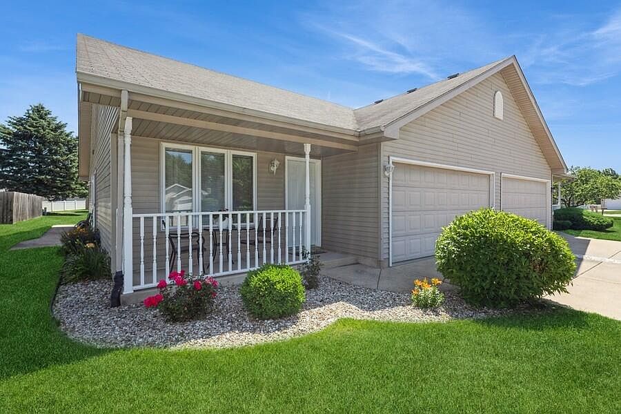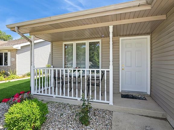 Just about perfect! Extra clean Ranch style half duplex with new luxury vinyl flooring in living room, kitchen, dining room and primary suite. Lovely kitchen with tons of counterspace. NEW furnace and New central air in 24. New entry door. Closets all have shelving/storage systems. All rooms have ceiling fans. Quaint covered front porch and TWO patios. This home has been meticulously maintained. Lawn doctor service paid for through the 2025 season.